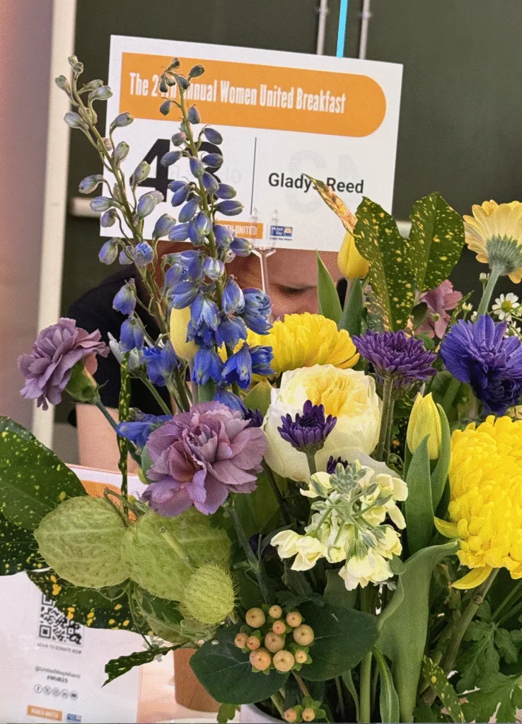 Just like the thoughtful floral centerpiece at her table, vibrant, grounded, and full of life, Gladys brings together people, ideas, and purpose. She cultivates community.